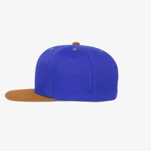 Descrição: Boné aba reta azul royal e laranjado – Two color, confeccionado em sarja 100% poliéster, possui ajuste de tamanho no traseiro, ilhoses bordados na copa sendo um em cada gomo, quatro costuras na aba.